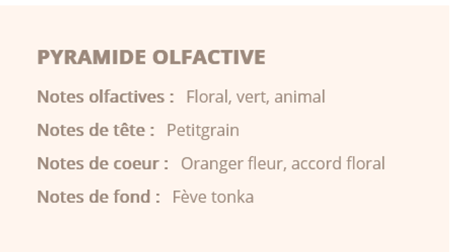 Contient : Acetate Geranyle, Acetate Linalyle, Geraniol, Hydroxycitronellal, Linalol, Limonene Droit (+100).