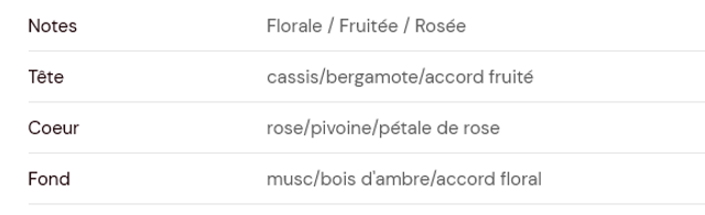 Contient : (R)-p-mentha-1,8-diene, [3R-(3α,3aβ,6β,7β,8aα)]-octahydro-6-methoxy-3,6,8,8-tetramethyl-1H-3a,7-methanoazulene, Linalool, 4-tert-butylcyclohexyl acetate, Citronellol, Methyl palmitate, geraniol, (E)-1-(2,6,6-trimethyl-1,3-cyclohexadien-1-yl)-2-buten-1-one, 3-(p-methoxyphenyl)-2-methylpropionaldehyde, Linalyl acetate.