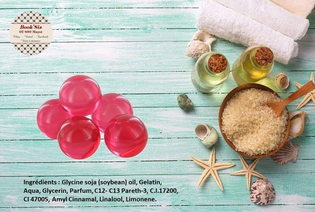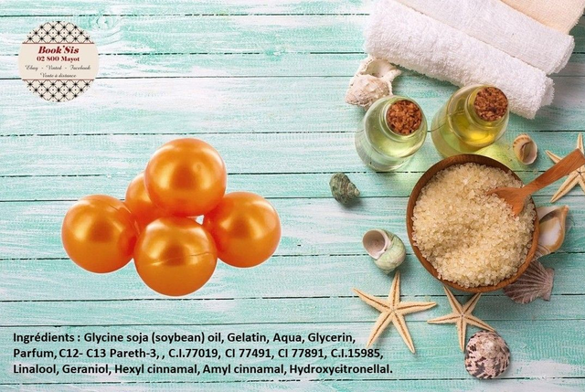 Les perles renferment de l'huile de soja parfumée. Cette formule nourrit la peau en profondeur, la rendant plus souple et la protégeant des agressions quotidiennes. L’eau très légèrement colorée et aromatisée vous procurera les bienfaits de l’aromathérapie et aura pour effet de diminuer stress, fatigue et anxiété, de prévenir les douleurs articulaires.