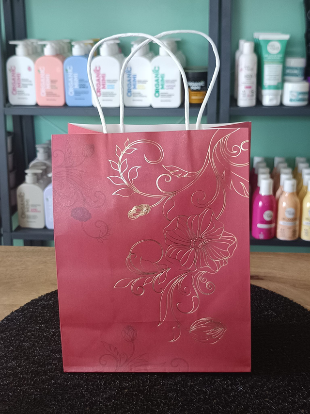 Une étiquette de l'entreprise sera collée sur les sacs cadeaux.
