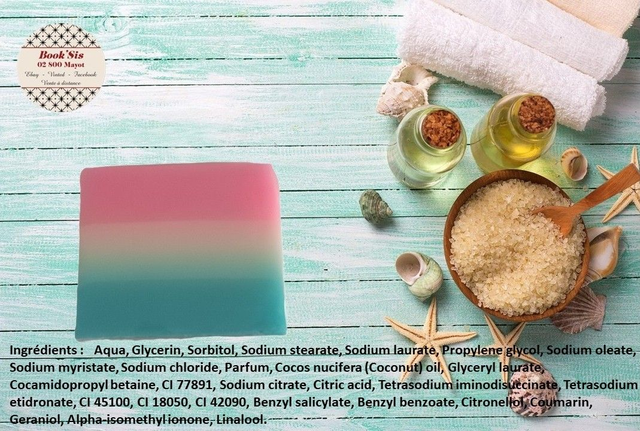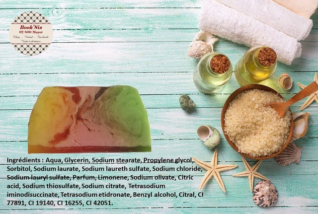Ces savons étant fabriqués artisanalement, merci de noter que les couleurs et design peuvent légèrement varier d'un pain à l'autre.