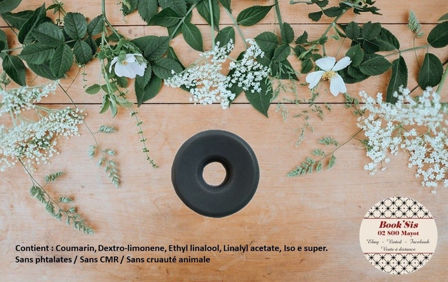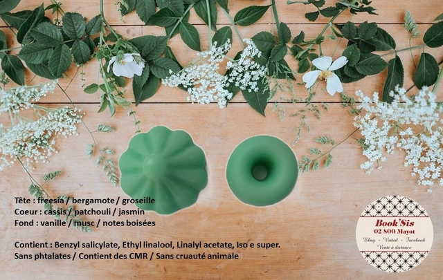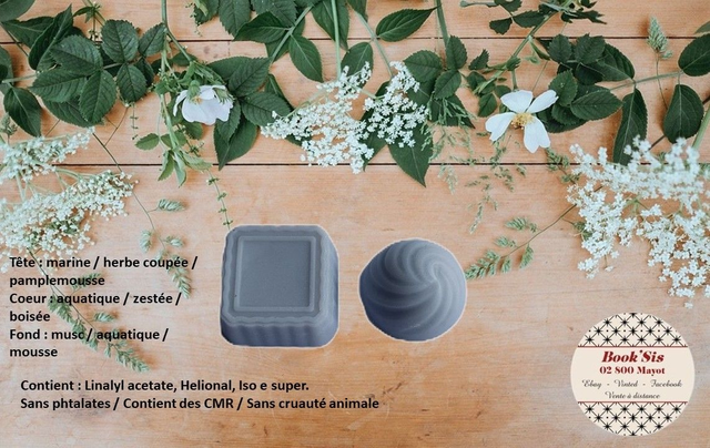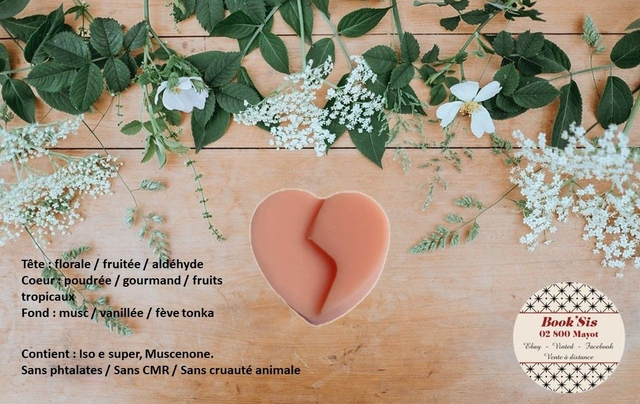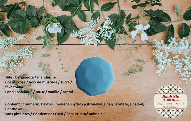 Liste des allergènes et pyramide olfactive sur les photos.