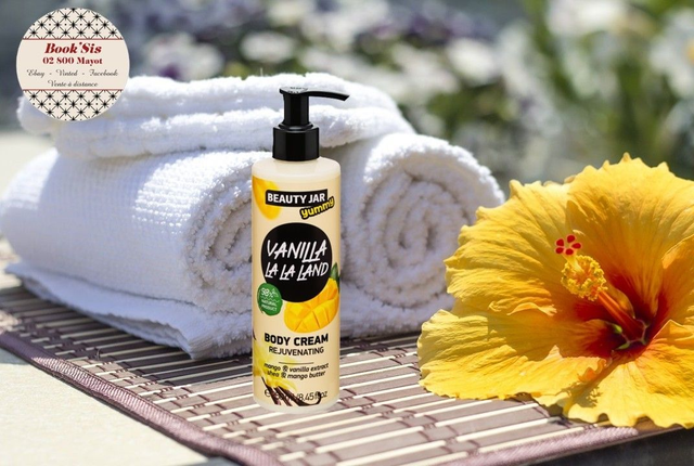 Ingrédients : Eau, glycérine, huile d'amande douce, triglycérides, distéarate de polyglycéryl-2 méthylglucose, stéarate de glycéryle, bétaïne, huile de pépins de raisin, alcanes de noix de coco, alcool catéarylique, beurre de mer, beurre de graines de mangue, huile de noix de coco, extrait de fruit de vanille, vitamine E, gomme xanthane, alcool benzylique, acide citrique, benzylate de sodium, sorbate de potassium, CI 19140, sulfate de sodium, hexyl cinnamal, limonène